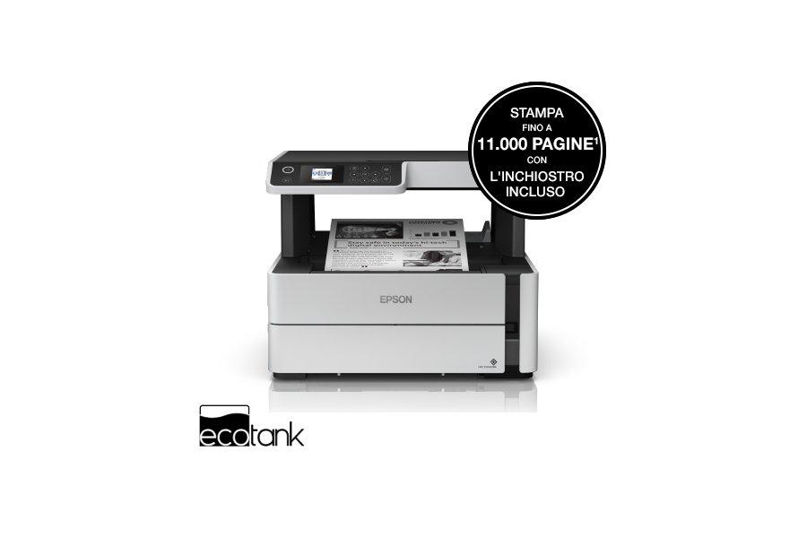 3 Numero medio di cartucce toner calcolato in base al numero di pagine indicato utilizzando i flaconi di inchiostro forniti insieme alle stampanti monocromatiche della gamma EcoTank. Confronto effettuato sul rendimento medio dei flaconi di inchiostro inclusi relativo alla gamma di stampanti monocromatiche EcoTank 2019 e il rendimento medio dei toner inclusi e di ricambio delle 10 stampanti laser monocromatiche più vendute (nella categoria fino a 20 ppm) in Europa occidentale durante il periodo da gennaio a dicembre 2018. Rendimento del toner secondo quanto riportato sui siti web dei produttori.